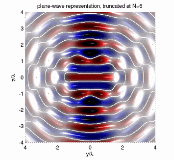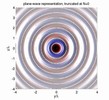 The spherical basis solutions can be used to represent sound fields entirely only when the indices n and m are complete. In practice, it is convenient, sometimes numerically necessary to limit the index n to a finite order. The following animations show plane-wave and point-source sound fields truncated at different orders n.
