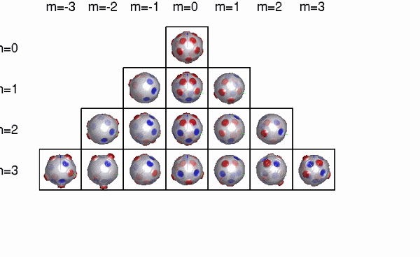 Fig. 1: Surface vibration of spherical loudspeaker arrays that create spherical harmonics.